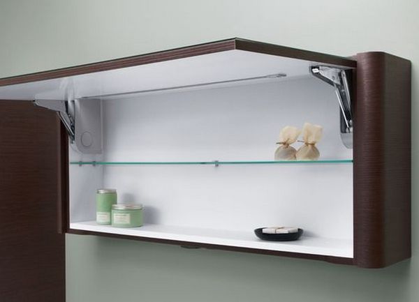 - Classic locker , nga kasagaran makita sa mga tindahan ug mga balay. Kini usa ka standard nga rectangular o square hanging cabinet nga adunay mga shelves alang sa mga kosmetiko ug tanan nga matang sa mga gagmay nga butang, gitabunan sa mga pultahan. Sa diha nga pagpili sa ingon nga usa ka kabinete, sa pagsulay sa pagsiguro nga ang gilapdon niini sama sa gilapdon sa kabhang, aron nga sa umaabot ikaw walay mga problema sa paglihok sa palibot sa lawak.